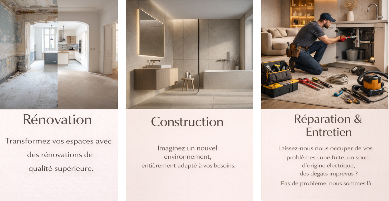Profitez de cet espace pour découvrir nos services d’expertise en rénovation et construction ainsi qu’entretien. Conçus pour accompagner vos projets de rénovation et de construction de A à Z.